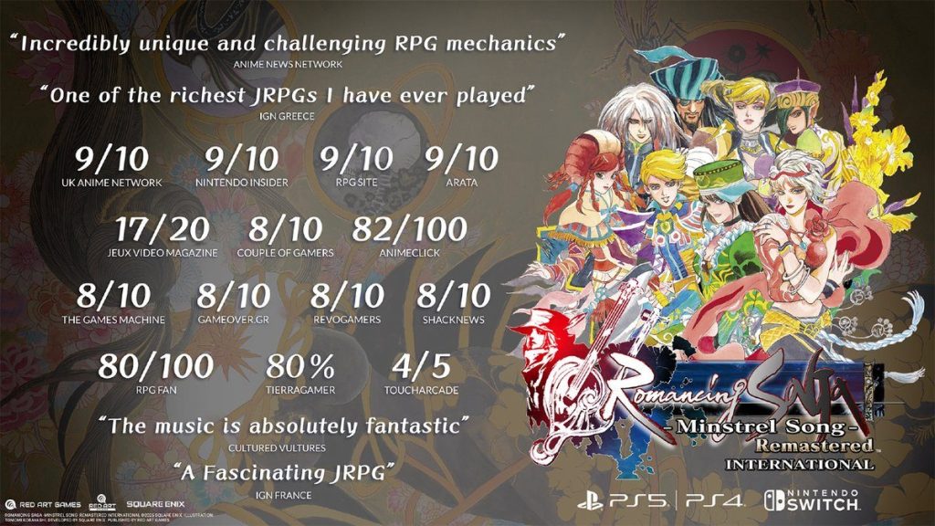 Romancing SaGa -Minstrel Song- Remastered: Un RPG clásico con modernizaciones precisas que merece ser jugado hoy. No es el RPG más accesible de 2025, pero sí uno de los más sinceros y ricos en mecánicas. Su libertad, profundidad y personalidad le otorgan una puntuación sólida de 8 sobre 10. Ideal para veteranos del género y curiosos con paciencia, este remaster sigue recordándonos que el rol no siempre necesita de guías de mano para ser épico. – juegorpg